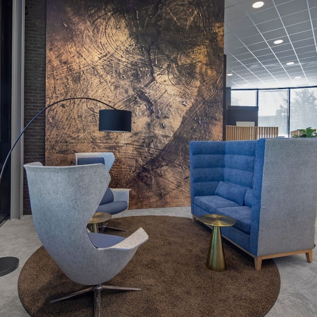 De luxe loungeplekken zijn ruim opgesteld in de open ruimte en bieden daarmee een ideale omgeving voor informeel overleg. De comfortabele banken en fauteuils maken het mogelijk om op een toegankelijke en gemoedelijke manier te werken en te netwerken.