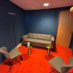 Spreekkamer 1 is een warme en uitnodigende ruimte, ingericht met twee comfortabele stoelen en een fijne bank. Deze opstelling maakt de kamer uitermate geschikt voor coaching, één-op-één gesprekken en persoonlijke consulten. De rustige sfeer en huiselijke inrichting zorgen ervoor dat bezoekers zich snel op hun gemak voelen, terwijl jij als professional kunt werken in een vertrouwde en professionele omgeving.