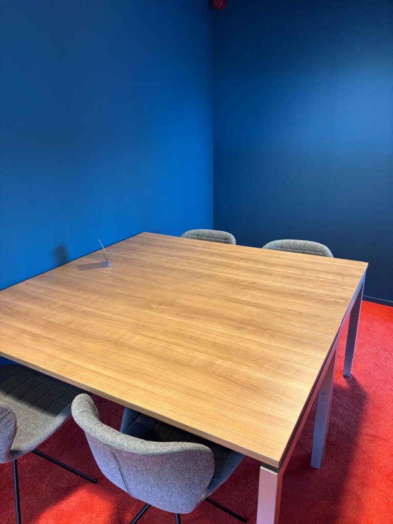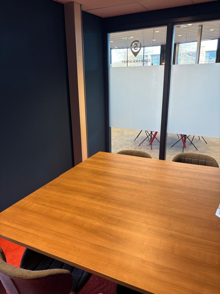 Spreekkamer 5 is een ruime en lichte kamer, ingericht met twee tafels en vier stoelen. Deze opstelling maakt de ruimte ideaal voor gesprekken, kleine overleggen of consulten. De kamer biedt voldoende bewegingsvrijheid en een rustige, professionele sfeer, zodat gesprekken ongestoord en effectief kunnen plaatsvinden.